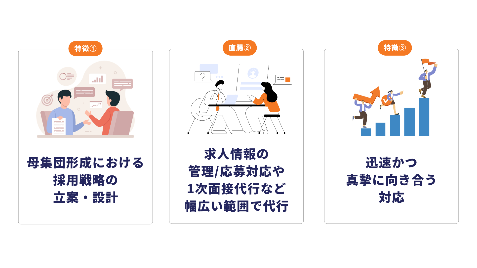 これまでの支援実績や市場データをもとに、業界や職種に合わせた最適な採用戦略をご提案します。媒体運用の改善や応募率向上の施策、選考フローの最適化など、経験に基づいた具体的な改善を行うことで、無駄なコストを抑えながら採用成果の最大化を目指します。